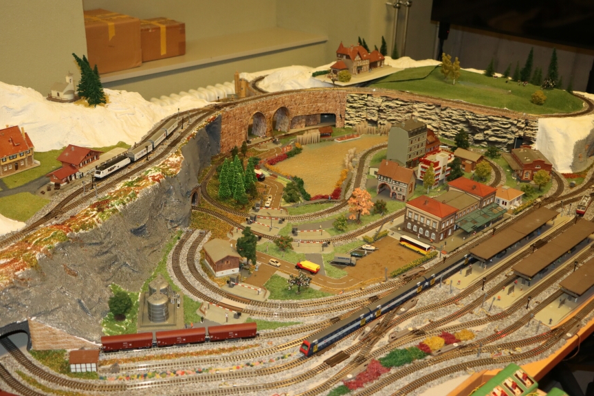 Für Mittwochnachmittag, 10. September lud das 60+-Team von Unterentfelden interessierte Eisenbahn-Fans zu einem Besuch beim Schotterplatz in Wildegg ein. Nach einer kurzen Busfahrt erreichte die diesmal leider etwas kleine Gruppe von nur 29 Personen den grossen Parkplatz bei der ehemaligen Färberei. Der Schotterplatz ist eine Modelleisenbahn‑Ausstellung, kombiniert mit Ausstellungsobjekten aus der «echten» Eisenbahnwelt. Wir durften eine etwa einstündige Führung miterleben. Die Ausstellung im Gebäudeinneren ist grösser, als man vermutet: über 1’000 m² Ausstellungsfläche. Herzstück ist eine grosse Modelleisenbahn in Spur «G» (Massstab etwa 1:22,5). Die Landschaft ist sehr abwechslungsreich gestaltet: ein prominenter Berg in der Mitte mit Zahnradbahn und Kehrtunneln. Zusätzlich sind Modelle und Exponate der “grossen Vorbilder” ausgestellt, zum Beispiel der Zahnradtriebwagen Nr. 123 der Wengernalpbahn. Die Dampflok E 3/3 Nr. 456 (1894), ursprünglich für die Nordostbahn gebaut, ist ein Highlight der Ausstellung. Während rund 30 Jahren stand sie in Emmenbrücke im Einsatz und verfügt damit über einen engen Bezug zu ihrer Heimat, dem Seetal. Am Schluss wurden uns noch die Werkstätten erklärt, in denen die Modell-Lokomotiven in Handarbeit selbst hergestellt werden. Während der kompetenten und humorvollen Führung erfuhren wir viele Hintergrundinformationen über Eisenbahnen, Stellwerke sowie Mutter- und Tochteruhren. Erwähnenswert ist auch die liebevoll zusammengestellte Ausstellung von historischen Bahnutensilien.