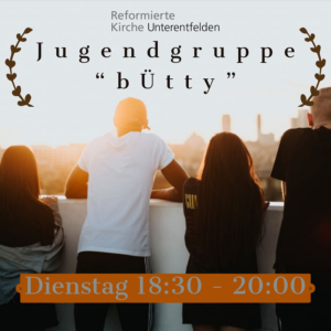 Die Jugendgruppe bÜtty, benannt nach dem gleichnamigen Gewürz, ist für dich, wenn du zwischen 17 und 20 bist. Isst du gerne mit Freunden und spricht über den Glauben und das leben? Dann bist du hier richtig.
